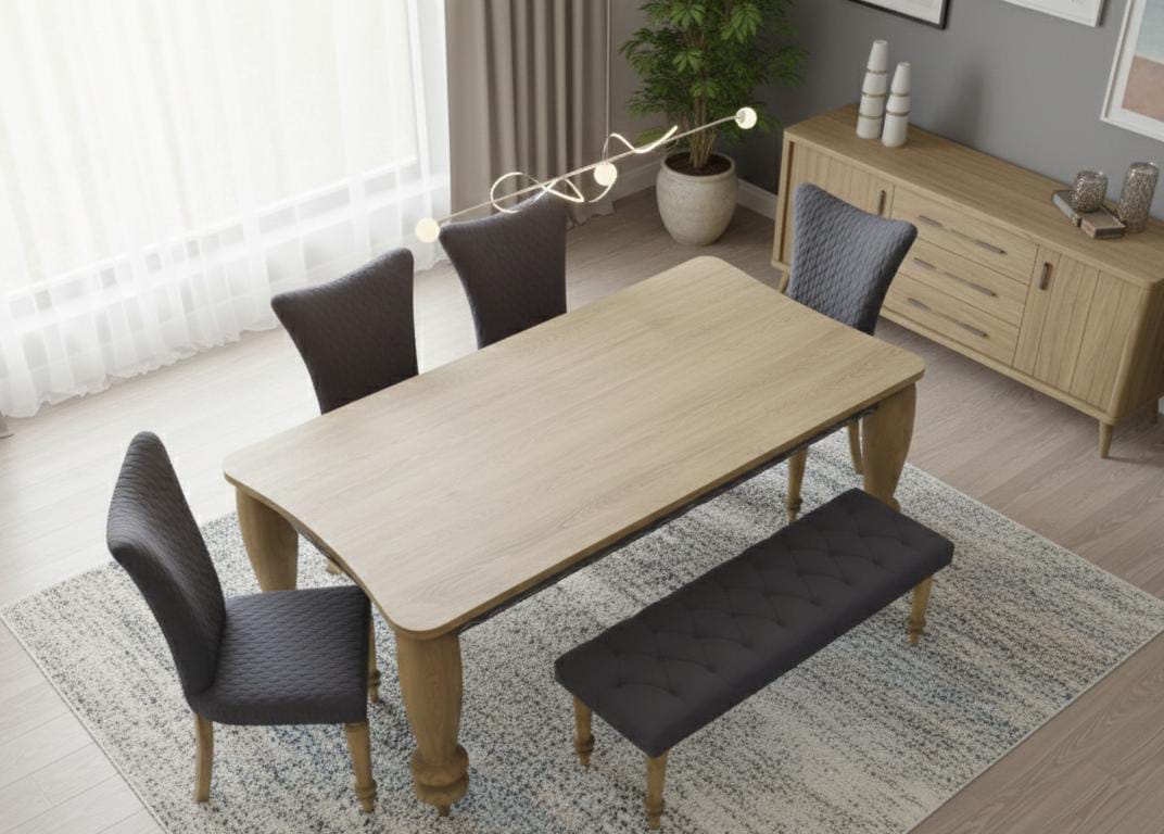 | Product / Price | Dining Table / Rs. 114000, Chair / Rs. 30000, Bench / Rs. 40000 |